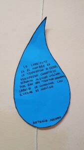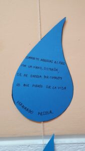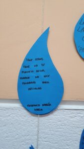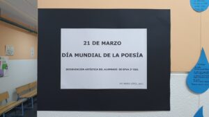 Con motivo del día mundial de la poesía (21 de marzo) y día mundial del agua (22 de marzo) el alumnado de 3º ESO de la materia de Educación Plástica Visual y Audiovisual ha realizado esta intervención artística decorando una esquina de nuestro centro.