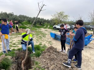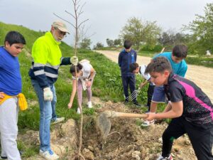 La actividad organizada por el Departamentos de: Biología y Geología y Geografía e Historia; y en conjunto con el Área de Agricultura y Medio Ambiente del Excmo. Ayuntamiento de Bujalance como parte de la Campaña de plantación de árboles: «Un árbol, un niño, un futuro». De esta forma el alumnado partió del centro a las 9:30 horas, recorrió la Ronda Sur para, más adelante, tomar el camino de la Fuente del Pilar, cruzar la CO-3200 e incorporarse al camino de Castilblanco, donde nos esperaban monitores del Área de Agricultura y Medio Ambiente para ayudar a nuestro alumnado a realizar las labores de siembra.