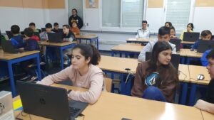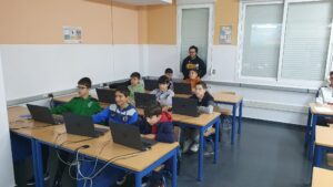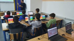 En el día de hoy se ha impartido un taller de impresión 3D para los cursos de 1º ESO A y 1º ESO B de la materia de Computación y Robótica. La sesión se ha dividido en 4 partes, cada una de una duración de un máximo de 15 minutos, para lo cual 4 alumnos participantes llevaban el control del mismo con tarjeta amarilla, que se mostraba al pasar los 10 minutos y tarjeta azul al sobrepasar los 12 minutos.