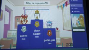 ❓ A continuación, pasamos a hacer un cuestionario tipo Kahoot! con preguntas sobre la impresión 3D y algunos acertijos. Este cuestionario puntúa tanto los aciertos como la rapidez en la respuesta y después de cada pregunta va mostrando una clasificación actual.