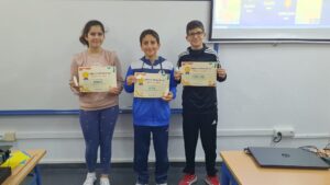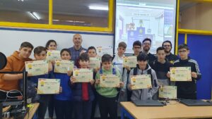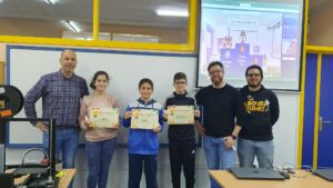 🥇🥈🥉 Para finalizar la sesión, se entregaron unos diplomas a TODOS los participantes, unos llaveros personalizados fabricados con la impresora y se hizo entrega de los premios a los tres primeros clasificados: Víctor, Daniela y Pedro José. El premio para los tres fue una réplica impresa en 3D de la emblemática torre de Pisa.